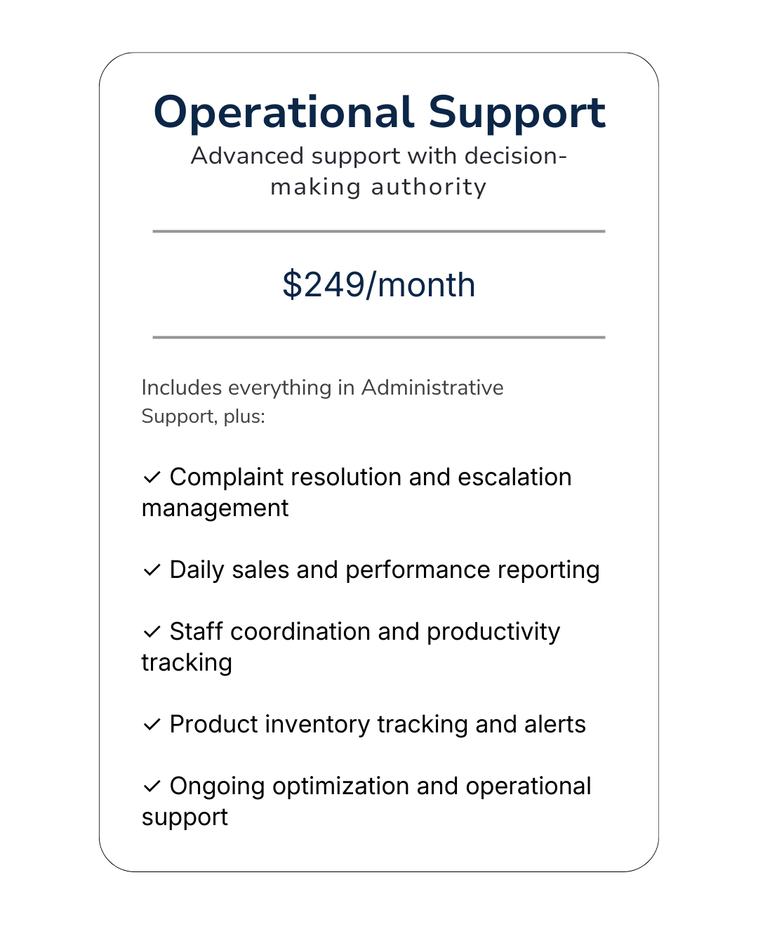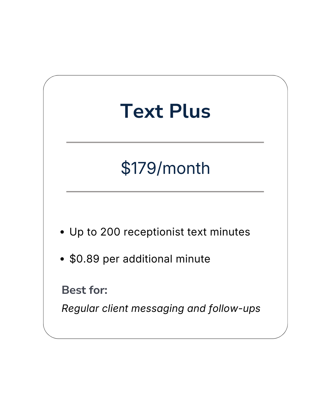 Subscriptions define what your receptionist can handle. Live support scales by the hour.